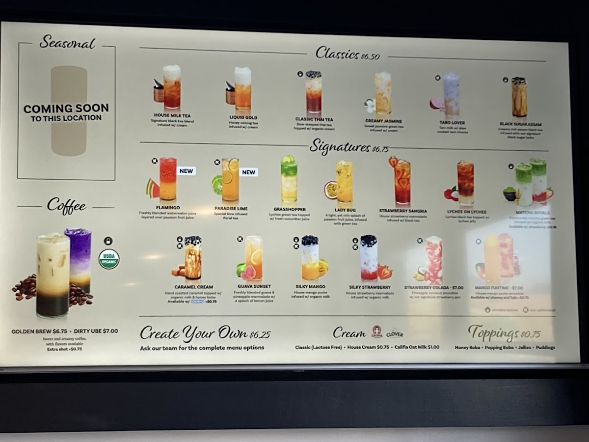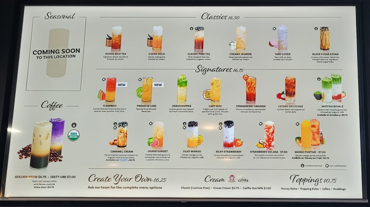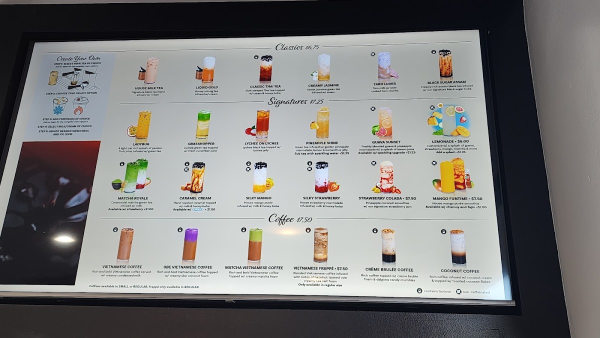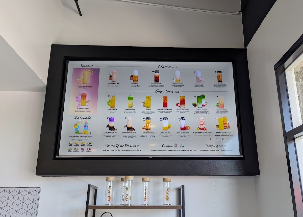 From a reviewer’s perspective, the menu at Teaspoon Santa Rosa offers a wide and creative selection of drinks and snacks that cater to both classic milk tea lovers and those looking for unique flavors. Popular choices like Vietnamese Coffee, Creme Brulee Coffee, Guava Sunset, Classic Thai Tea, and Caramel Cream highlight the shop’s strength in rich, flavorful beverages, while newer additions such as Tiramisu Latte, Cupid's Kiss, and Hoji Cookies And Cream bring a fun, seasonal twist. The classics, including House Milk Tea, Liquid Gold, Creamy Jasmine, and Taro Lover, provide reliable options for traditional tea fans, while signature drinks like Double Matcha, Custom-Made Lemonade, Pineapple Shine, and Grasshopper showcase more inventive combinations. Coffee lovers can enjoy variations like Ube Vietnamese Coffee, Coconut Coffee, and Vietnamese Frappé. The menu also includes customizable teas such as Assam Black Tea, Earl Grey Black Tea, and Lychee Black Tea, along with snacks like Macaron 6 Pc, Marshmallow Bar, and Chocolate Brownie. Overall, the menu feels diverse and well-rounded, with options ranging from classic milk teas to specialty drinks and desserts, making it a great spot for both quick treats and group orders with items like House Milk Tea - Party Pour and Tea Traveler selections.